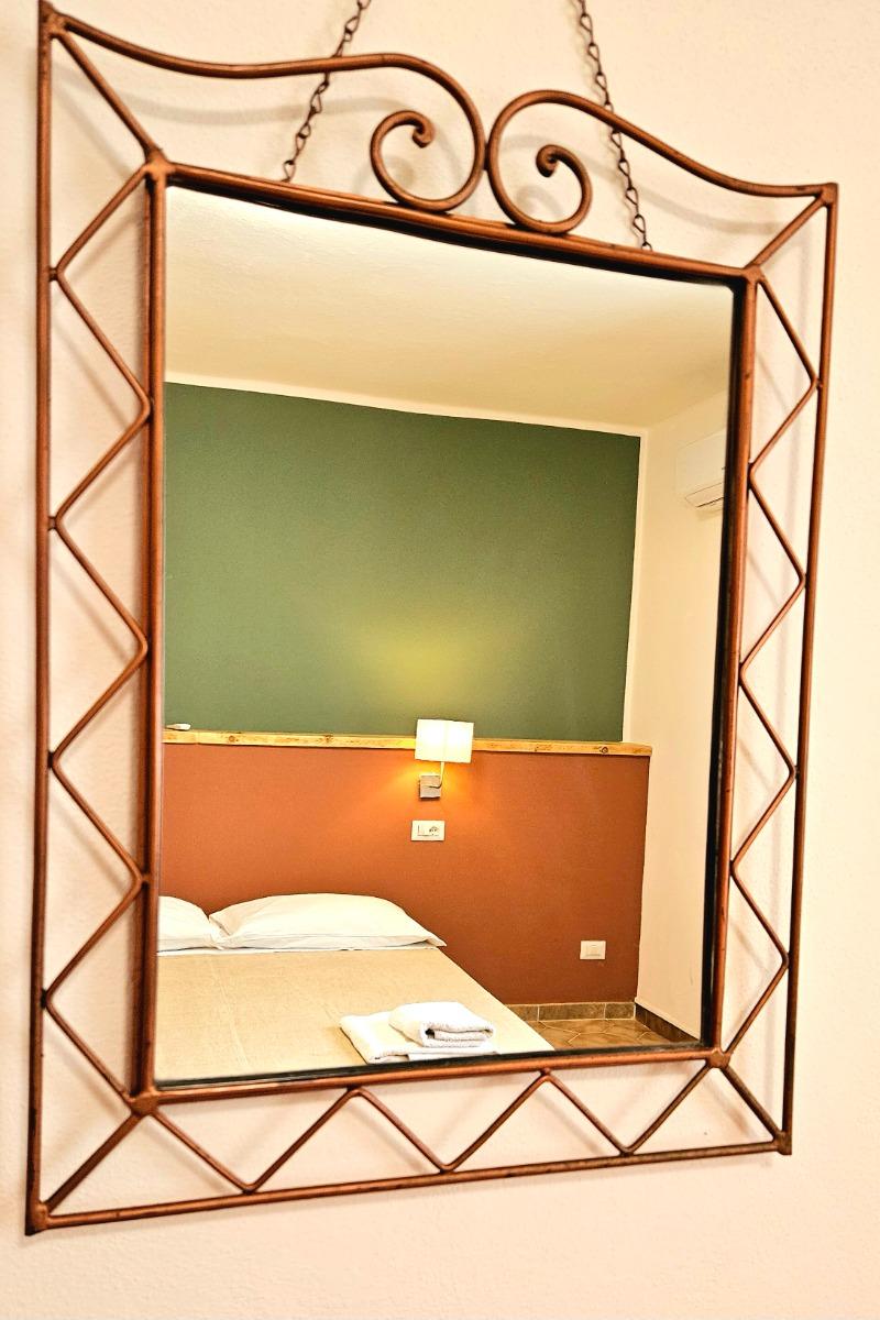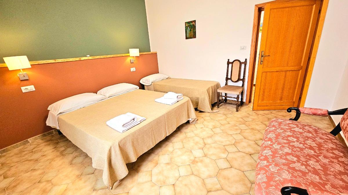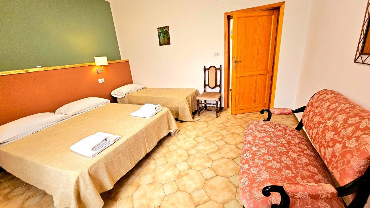 La camera da letto matrimoniale è dotata di un letto Queen size, un letto singolo, aria condizionata caldo/freddo, un elegante divanetto d'epoca, un armadio a vista e un balconcino che si affaccia sulla via principale alberata e luminosa.